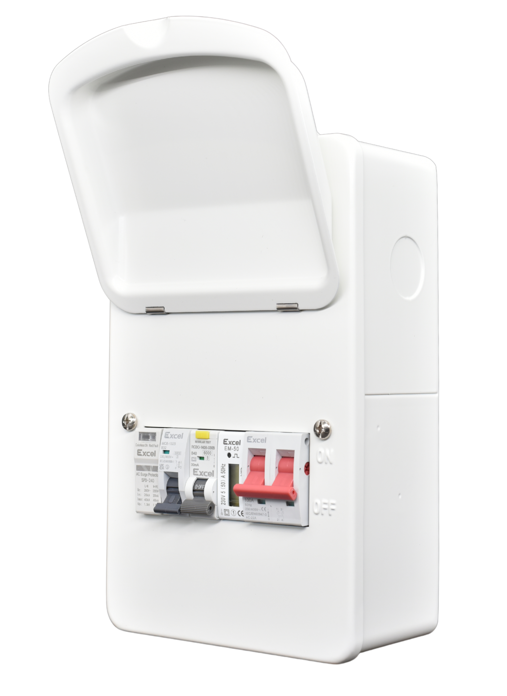 6 module board, 40A Bi-directional RCBO, Energy Meter, 100A Main Switch with SPD |